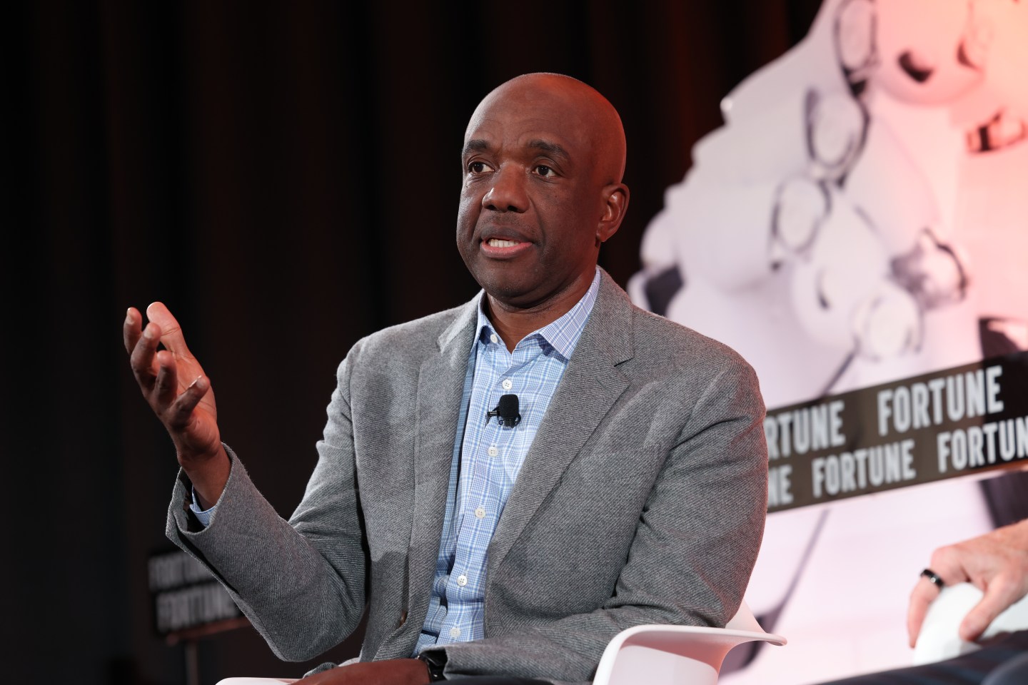 James Manyika, senior vice president of technology and society at Google, speaks at Fortune's Brainstorm A.I. in San Francisco on Dec. 5, 2022.